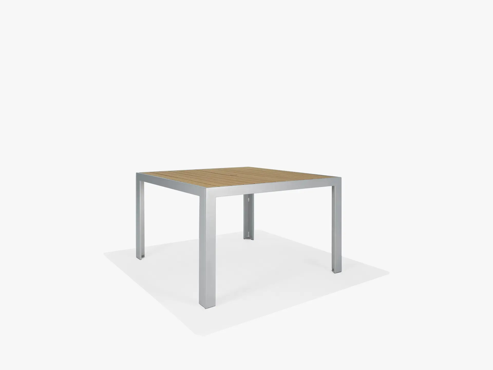 Designed for durability and modern appeal, the Meza 42" Square Dining Table is a versatile centerpiece for outdoor dining in hospitality, multi-family, and commercial settings. Crafted with marine-grade HDPE slats and a rust-resistant aluminum frame, it offers the look of natural wood with the resilience needed for high-traffic environments.