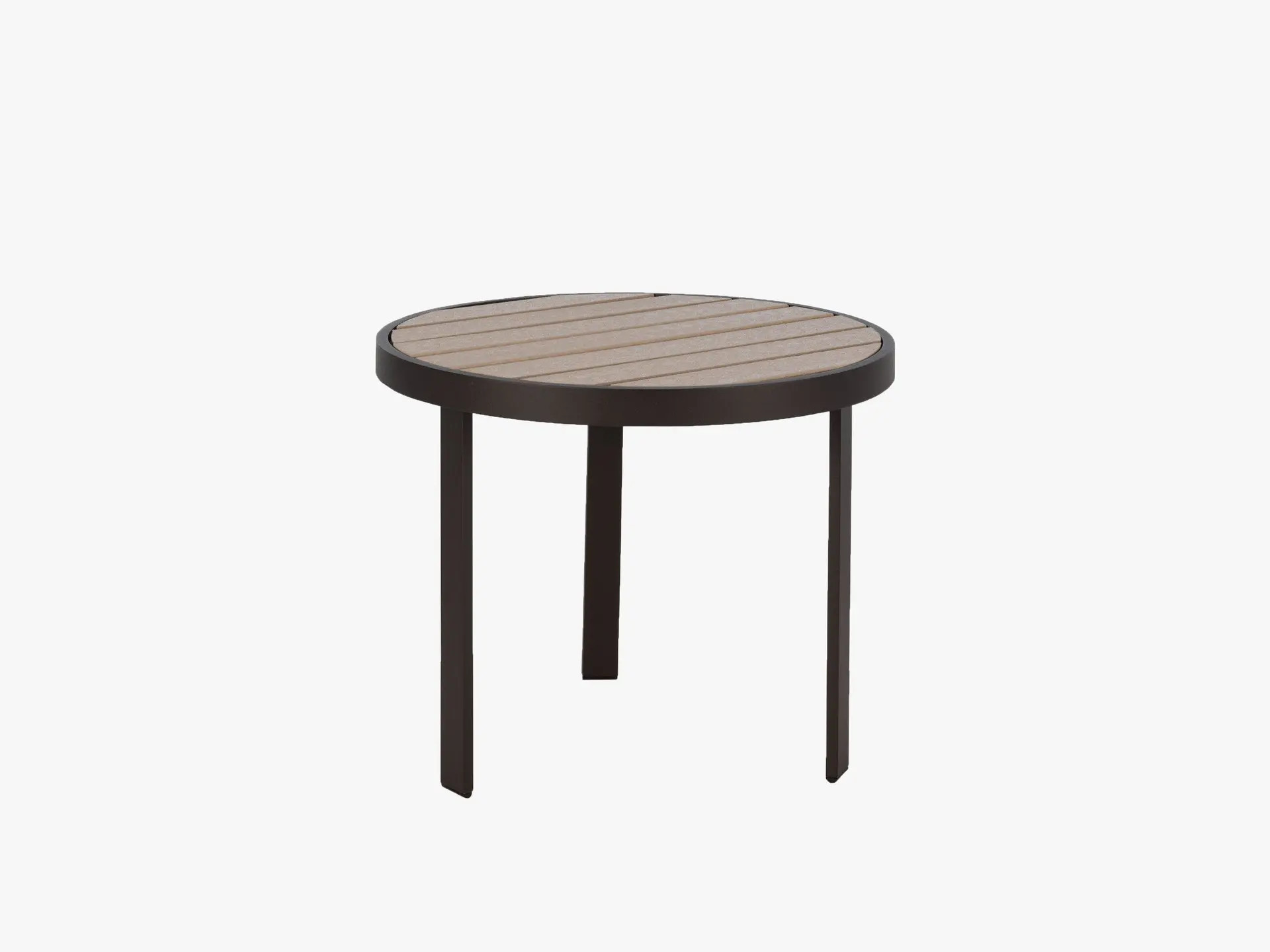 Compact, stylish, and built to perform, the Meza 24" Round Occasional Table is the perfect accent piece for outdoor lounge areas, patios, and poolside settings. Designed with marine-grade HDPE slats and a powder-coated aluminum frame, it offers the look of natural wood with the resilience required for high-traffic commercial environments.