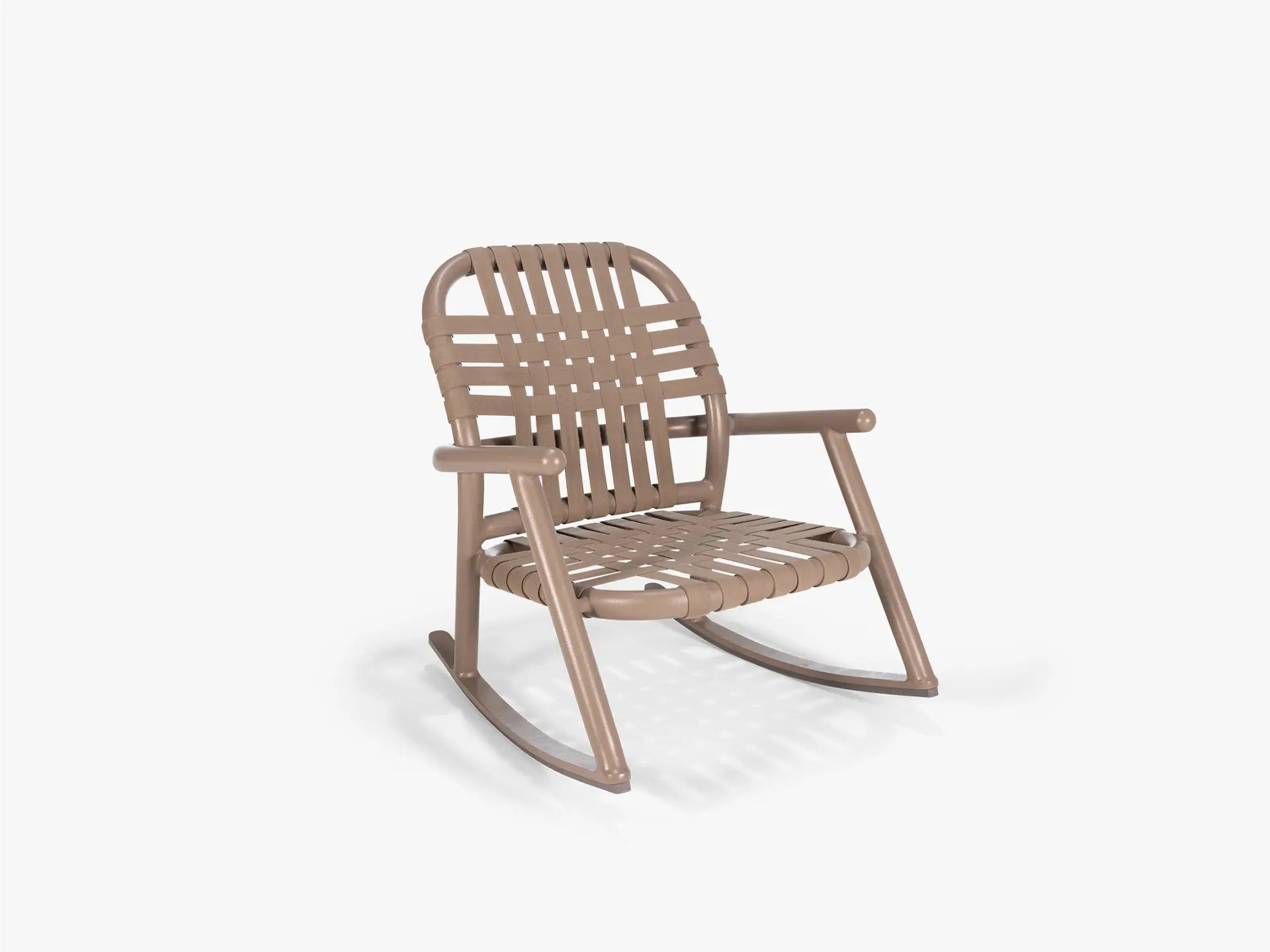 The Oslo Collection Rocker by Texacraft brings smooth, rhythmic motion and modern comfort to commercial outdoor lounge spaces. Its subtly curved runners create a gentle rocking experience, while the commercial‑grade strap seat delivers breathable support ideal for high‑use environments. Built on a low‑profile, wide aluminum frame, the rocker offers exceptional stability—an advantage for properties located in high‑wind or open‑air settings .