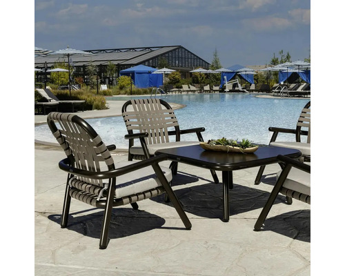 Built on a low‑profile, wide aluminum frame, the Oslo Spa Chair offers grounded stability, especially valuable in high‑wind or exposed outdoor environments. The Suncloth Weave strap construction enhances airflow, dries quickly, and maintains comfort even in heavy‑traffic areas. Its streamlined silhouette brings a sense of order and tranquility to resort decks, wellness spaces, and community pools.